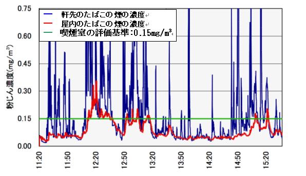 | サービス業で受動喫煙対策が不十分な場合、換気が不十分な通常の建物内で時間あたり大量の喫煙が行われるため、厚生労働省が定める喫煙室の粉じん濃度の数倍0数十倍高い濃度に達することが報告されている。このような場合には、その施設を利用する顧客の受動喫煙については健康増進法違反となり、また、そこで働く従業員については職業的な受動喫煙という問題が発生する。 |